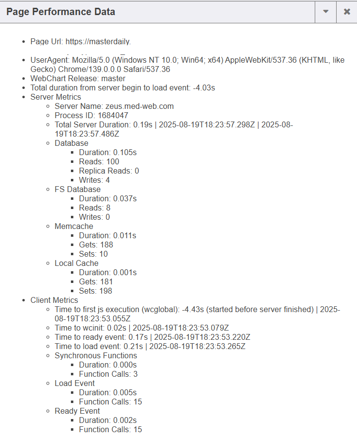 - The gray circle icon displays page performance data.