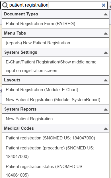 - The magnifying glass is a search feature that allows users with the proper security to search for key functions, layouts, system settings, etc by name to quickly navigate to that area.